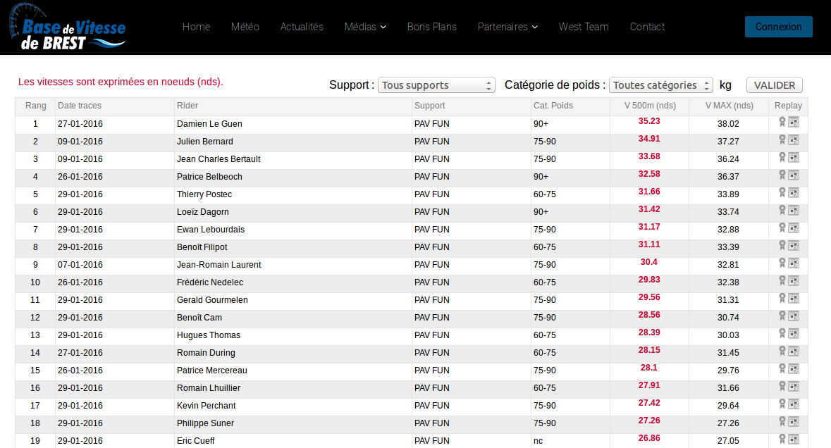 Depuis le début d'année, la base de vitesse de Brest est ouverte ! La logistique est assez simple : il suffit de partir à l'eau avec son GPS et de ramener une trace GPS de 500m pour calculer une vitesse moyenne.